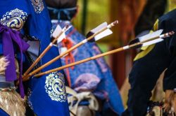 咲き誇る梅の木の下で行われる華やかな行事をご覧あれ