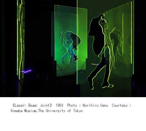 今展では1968年に発表したレーザー光線を用いたインスタレーション作品である 《Laser: Beam: Joint》 を中心に構成されます。当時の最新技術を用いた画期的なインスタレーション作品はアクリルから切り抜かれた等身大の人型を繋ぐようにレーザー光線が交錯していきます。