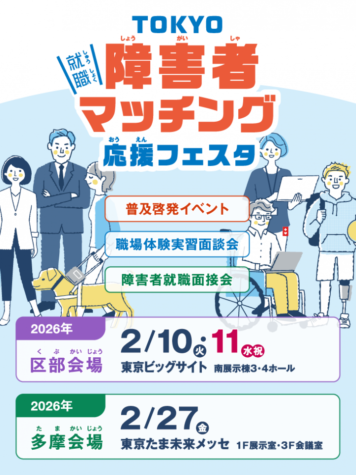 東京都、東京労働局、東京しごと財団主催の障害者雇用推進イベントです。