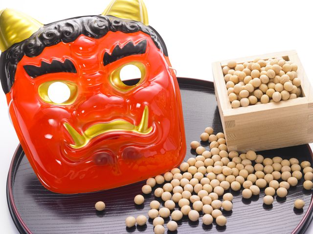 「福は内、鬼は外」と声を出しながら福豆を撒いて厄除けをし、年齢の数だけ(もしくは1つ多く)豆を食べることが一般的ですが、